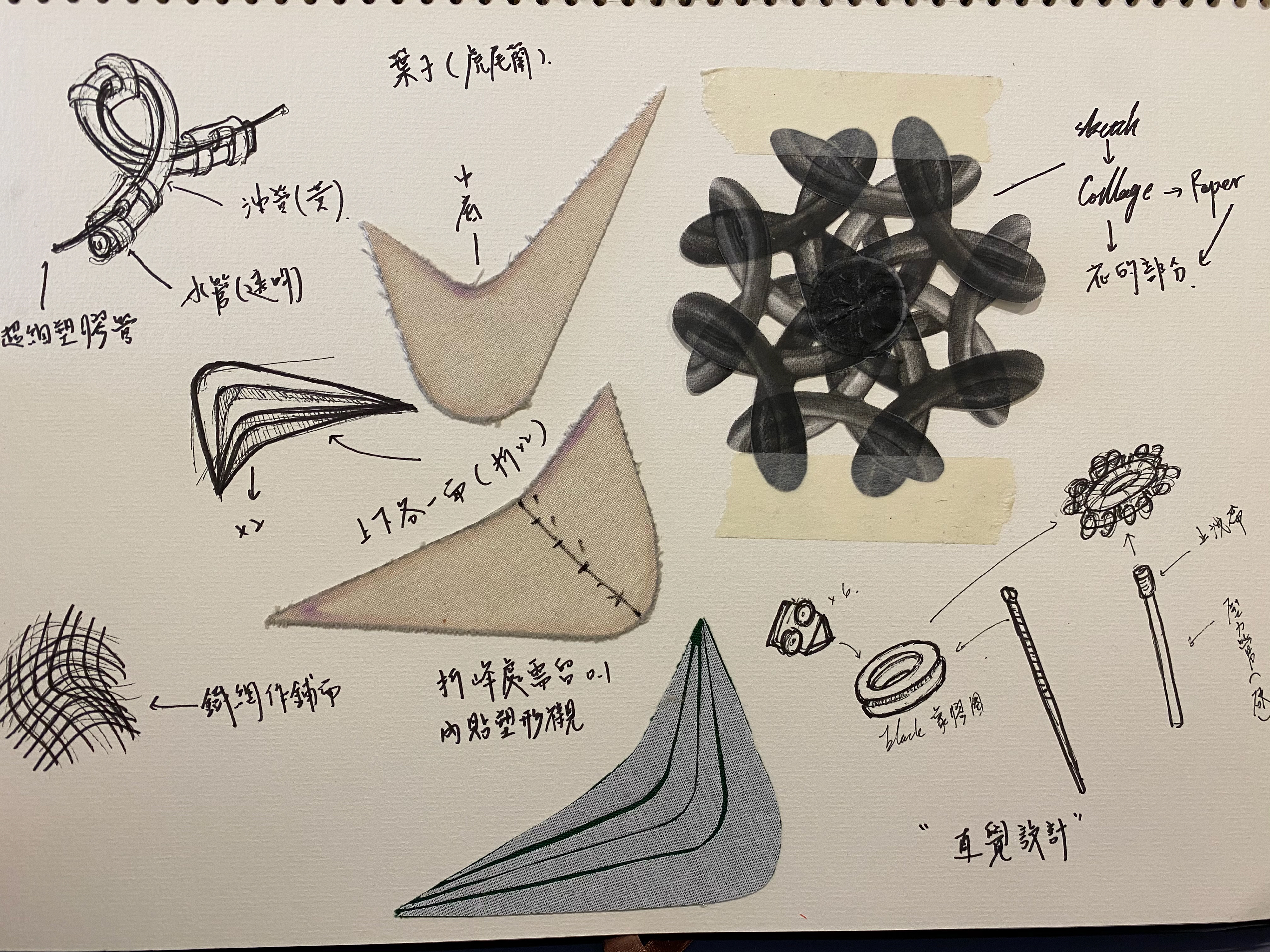collage / paper three-dimensional 將對自己有意義的物品畫成精細素描,並透過拼貼發現更多可能性的結構。拼貼使用不同磅數的描圖紙及碳粉印表機進行製作,可以充分的表現素描紋理及質感